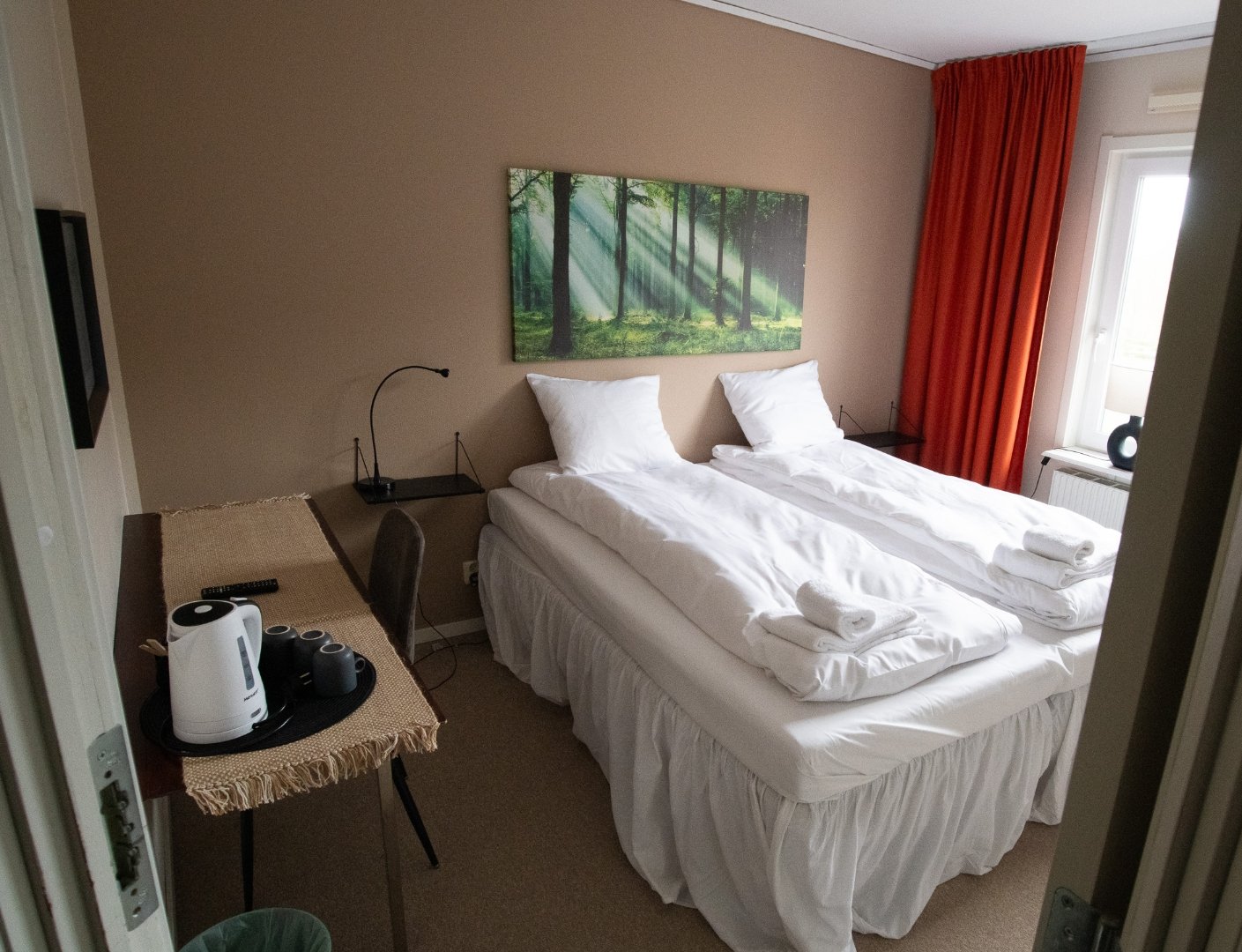 Vår bekväma 2-rumslägenhet erbjuder gott om utrymme, vilket gör den perfekt för både korta och långa vistelser. Det separata sovrummet har en mysig enkelsäng, medan vardagsrummet har en bekväm sovsoffa och en platt-TV för avkoppling. En särskild arbetsyta erbjuder ett praktiskt område för arbete eller studier. Lägenheten har också ett modernt badrum med dusch samt en kaffe- och tekokare för din bekvämlighet. Som gäst har du fri tillgång till det fullt utrustade gemensamma köket på 4:e våningen.